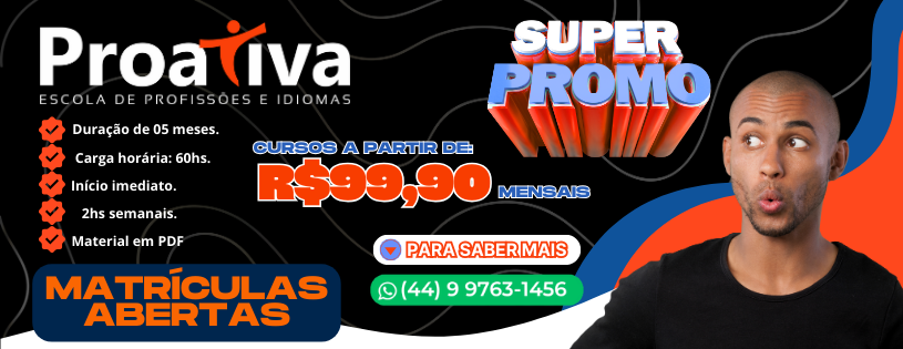Página InicialPROATIVA CURSOS LTDA ME2024-06-28T12:07:23-03:00 ESTUDE EM CASAEstude de qualquer lugar que desejar e a qualquer hora.CERTIFICADOCertificado reconhecido em todo o Brasil.APRENDIZADOAprendizado garantido, faça seu horário e aprenda no seu ritmo.QUALIDADEAula feita totalmente voltada para EAD. FAÇA UMA AULA EXPERIMENTAL E CONFIRA A QUALIDADE DE NOSSO CONTEÚDO CLIQUE AQUI Informática Administrativos Idiomas E Muito mais...Cursos em DestaqueDestaque Windows 11 Saiba maisDestaque Plano Anual – Pacote Administrativo Saiba maisDestaque Google Ads Saiba maisDestaque Dpt. Pessoal Saiba maisDestaque Cuidador de Idosos Saiba maisDestaque English BTeens – Módulo 02 Saiba maisDestaque Inter English – Módulo 01 Saiba maisDestaque Língua Portuguesa – Preparatório Enem Saiba maisDestaque Língua Portuguesa – Reforço Escolar – Fundamental Saiba maisDestaque Matemática Financeira Saiba maisProjeto Educando crianças de 03 a 12 anos Saiba maisQuick View Informática Educacional Fundamental 1º Ano Saiba maisQuick View Informática Educacional Fundamental 2º Ano Saiba maisQuick View Informática Educacional Fundamental 3º Ano Saiba maisQuick View Informática Educacional Fundamental 4º Ano Saiba maisQuick View Informática Educacional Fundamental 5º Ano Saiba maisQuick View Informática Educacional Fundamental 6º Ano Saiba maisQuick View Informática Educacional Fundamental 7º Ano Saiba maisQuick View Informática Educacional Fundamental 8º Ano Saiba maisQuick View Informática Educacional Fundamental 9º Ano Saiba maisQuick View Informática Educacional Infantil – 4 Anos Saiba maisQuick View Informática Educacional Infantil – 5 Anos Saiba maisQuick View Informática Educacional Maternal – 3 Anos CURSOS NA ÁREA DA INDÚSTRIA Saiba maisQuick View GESTÃO LOGÍSTICA & PCP Saiba maisQuick View LEITURA E INTERPRETAÇÃO DE DESENHO TÉCNICO Saiba maisQuick View METROLOGIA Saiba maisQuick View NR35 – TRABALHO EM ALTURA Saiba maisQuick View OPERADOR DE COLHEITADEIRA Saiba maisQuick View OPERADOR DE EMPILHADEIRA Saiba maisQuick View OPERADOR DE GUINDAUTO Saiba maisQuick View OPERADOR DE MÁQUINAS PESADAS Saiba maisQuick View OPERADOR DE PERFURATRIZ Saiba maisQuick View OPERADOR DE PONTE ROLANTE Saiba maisQuick View RECICLAGEM OPERADOR DE EMPILHADEIRA Saiba maisQuick View RECICLAGEM OPERADOR DE PONTE ROLANTE Destaque Saiba mais Windows 11 Saiba mais Saiba mais OPERADOR DE EMPILHADEIRA Saiba mais Saiba mais OPERADOR DE COLHEITADEIRA Saiba mais Saiba mais OPERADOR DE MÁQUINAS PESADAS Saiba mais Saiba mais OPERADOR DE PERFURATRIZ Saiba mais Saiba mais OPERADOR DE GUINDAUTO Saiba mais Saiba mais NR35 – TRABALHO EM ALTURA Saiba mais Saiba mais TBO: TREINAMENTO BÁSICO OPERACIONAL Saiba mais Saiba mais LEITURA E INTERPRETAÇÃO DE DESENHO TÉCNICO Saiba mais Saiba mais METROLOGIA Saiba mais Saiba mais GESTÃO LOGÍSTICA & PCP Saiba mais Saiba mais RECICLAGEM OPERADOR DE PONTE ROLANTE Saiba mais Saiba mais OPERADOR DE PONTE ROLANTE Saiba mais Saiba mais RECICLAGEM OPERADOR DE EMPILHADEIRA Saiba mais Saiba mais Frentista Saiba mais Saiba mais CPA – 10 Saiba mais Saiba mais Auxiliar de creche Saiba mais Saiba mais Socorrista Saiba mais